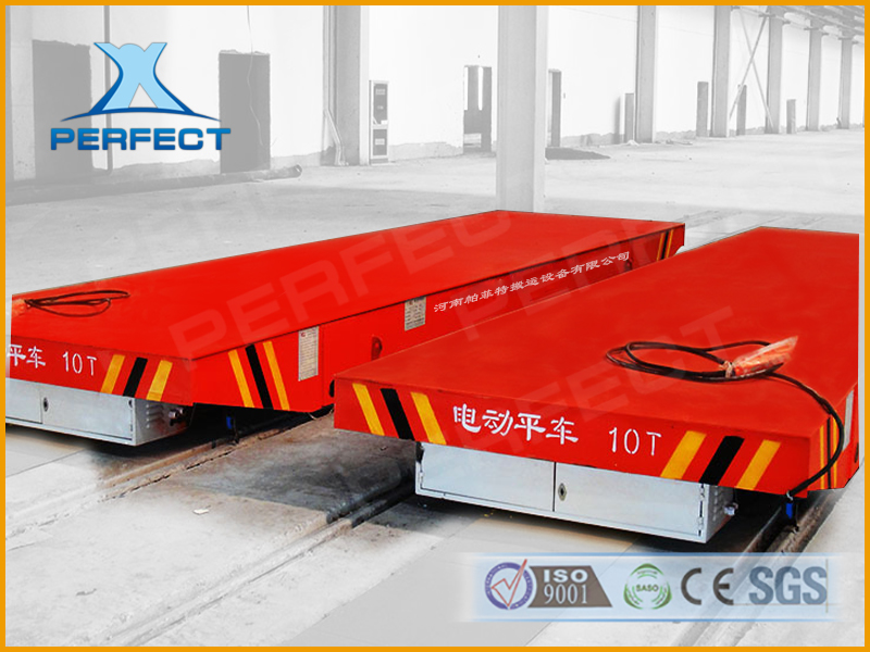 BHX:采用滑觸線將380V交流電源引入平車作為該平車的電力來源,其運行頻率和使用時間不受限制,適用于較長距離運輸?shù)膱龊稀;|線安裝平車底部或兩側,會對其他車輛的過往造成影響,但因其臺面較低,卻是流水線生產(chǎn)的 輸送設備。