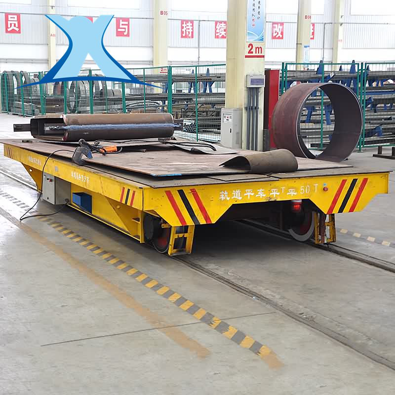 BHX:采用滑觸線將380V交流電源引入平車作為該平車的電力來源,其運行頻率和使用時間不受限制,適用于較長距離運輸?shù)膱龊?。滑觸線安裝平車底部或兩側(cè),會對其他車輛的過往造成影響,但因其臺面較低,卻是流水線生產(chǎn)的 輸送設(shè)備。
