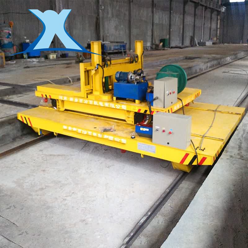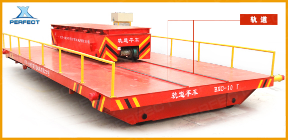 擺渡平車一般用于兩條或多條平行軌道之間的換軌,由上下兩層軌道平車疊加組成,地溝中行駛,臺(tái)面與地面平齊,且大車臺(tái)面上安裝有軌道,整車運(yùn)行路線呈前后布置,大車橫向快速移動(dòng)后能夠準(zhǔn)確的停止、定位和接軌,小車在大車臺(tái)面軌道上呈縱向路線運(yùn)行,實(shí)現(xiàn)小車換軌換位功能。擺渡式軌道平車不僅僅只是兩層,還可根據(jù)情況設(shè)計(jì)為三層或多層。